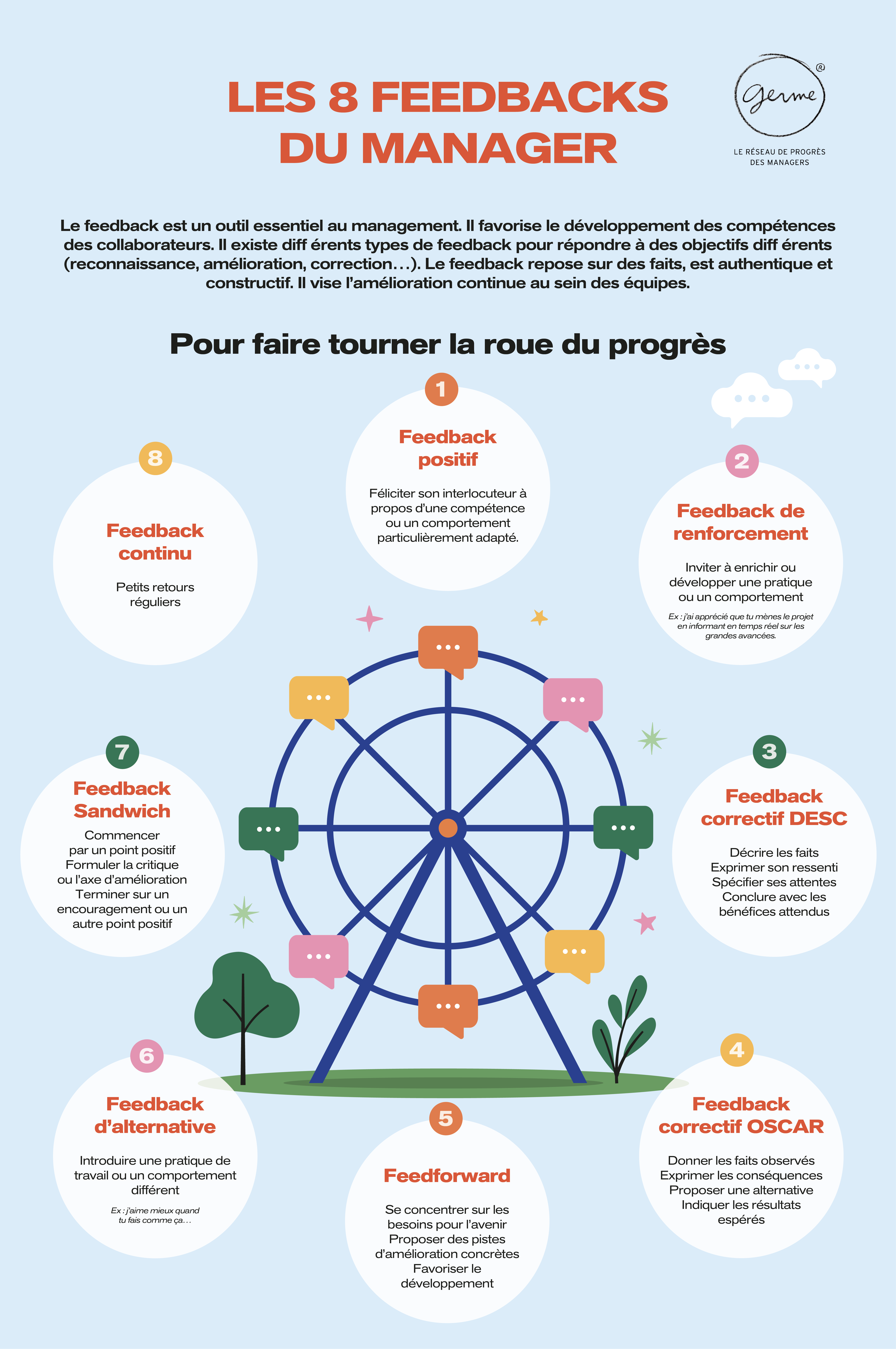 Le feedback permet à un manager de faire grandir son équipe, de libérer son plein potentiel. Mais comment s'y prendre pour faire un retour à un collaborateur ? GERME vous offre 8 clés pour faire un bon retour à votre équipe.